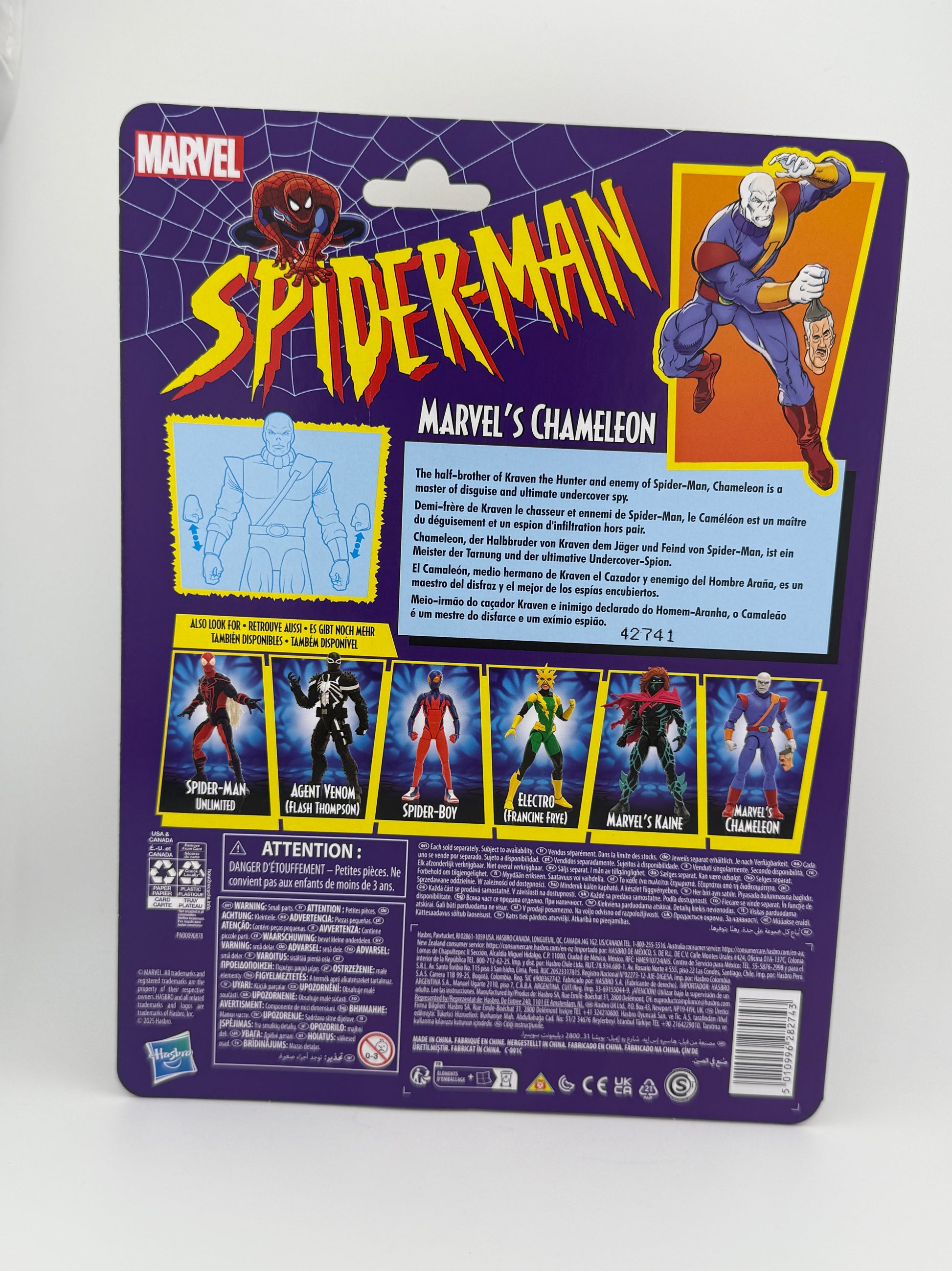 The half-brother of Kraven the Hunter and enemy of Spider-Man, Chameleon is a master of disguise and ultimate undercover spy. Bring the excitement and wonder of the Marvel Universe to your collection with Hasbro Marvel Legends Marvel's Chameleon figure! This collectible 6-inch scale Marvel figure is detailed to look like the character from Marvel's Spider-Man comics. This Marvel's Chameleon action figure is fully articulated with premium design and poseable head, arms, and legs. Marvel action figure set comes with 5 accessories, including alternate set of hands, weapons accessories, and a mask accessory. Hasbro Marvel action figures' 6-inch scale make them great for posing and displaying in fans' collections. Reimagine comics-inspired scenes on your shelf with Marvel Legends action figures and Marvel collectibles. Ages 4 and up.