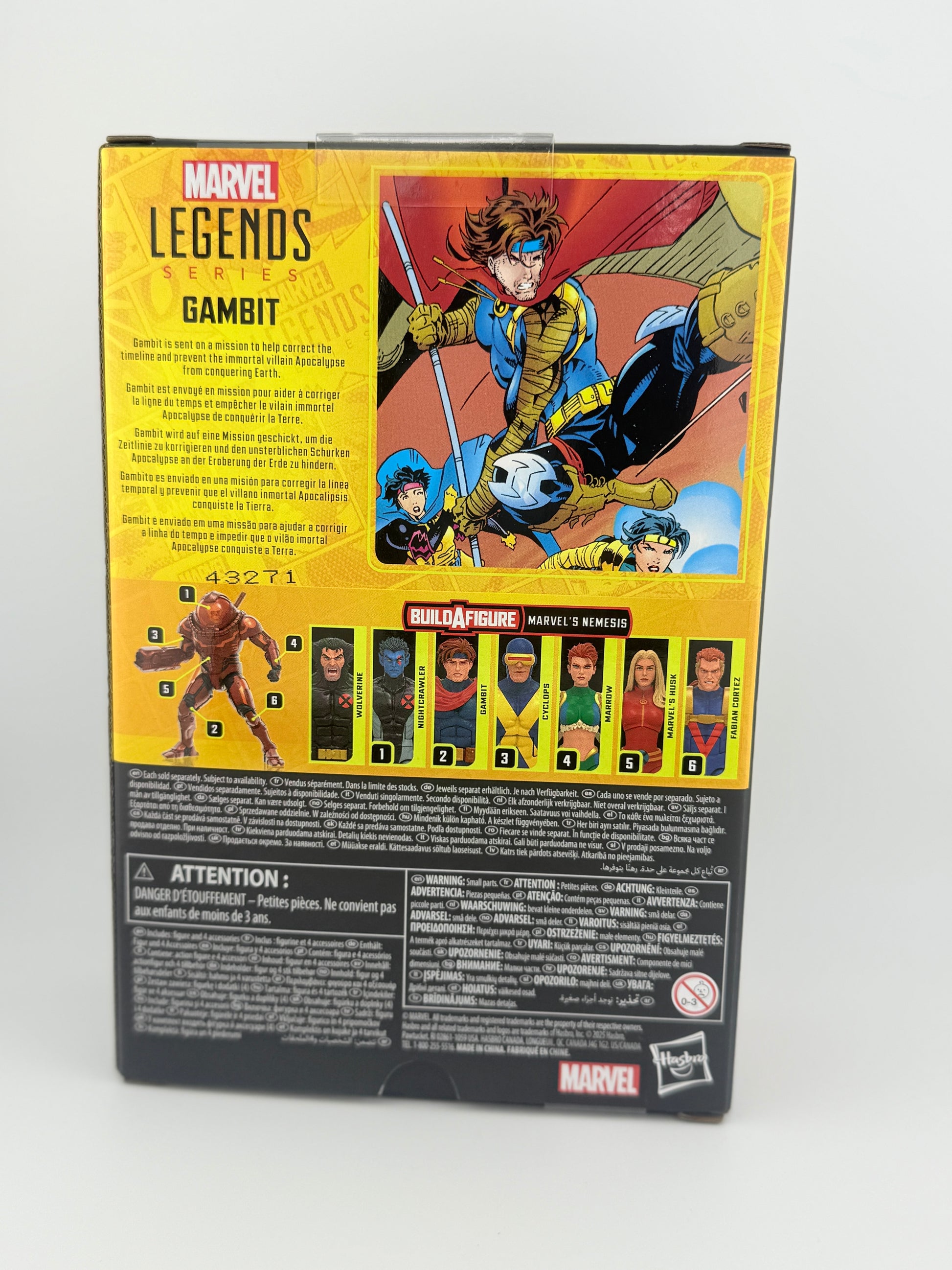 Bring the excitement and wonder of the Marvel Universe to your collection with Hasbro Marvel Legends Gambit X-Men figure! This collectible 6-inch scale Marvel figure is detailed to look like the character from Marvel's Age of Apocalypse comics. Gambit action figure is fully articulated with premium design and poseable head, arms, and legs. Marvel action figure set comes with 3 accessories and 1 Marvel's Nemesis Build-A-Figure piece. Complete the additional figure with Marvel Legends X-Men action figures Nightcrawler, Cyclops, Marrow, Marvel's Husk, and Fabian Cortez. (Each sold separately. Subject to availability.) Hasbro Marvel action figures' 6-inch scale make them great for posing and displaying in fans' collections. Reimagine X-Men comics-inspired scenes on your shelf with Marvel Legends action figures and Marvel collectibles. Ages 4 and up.